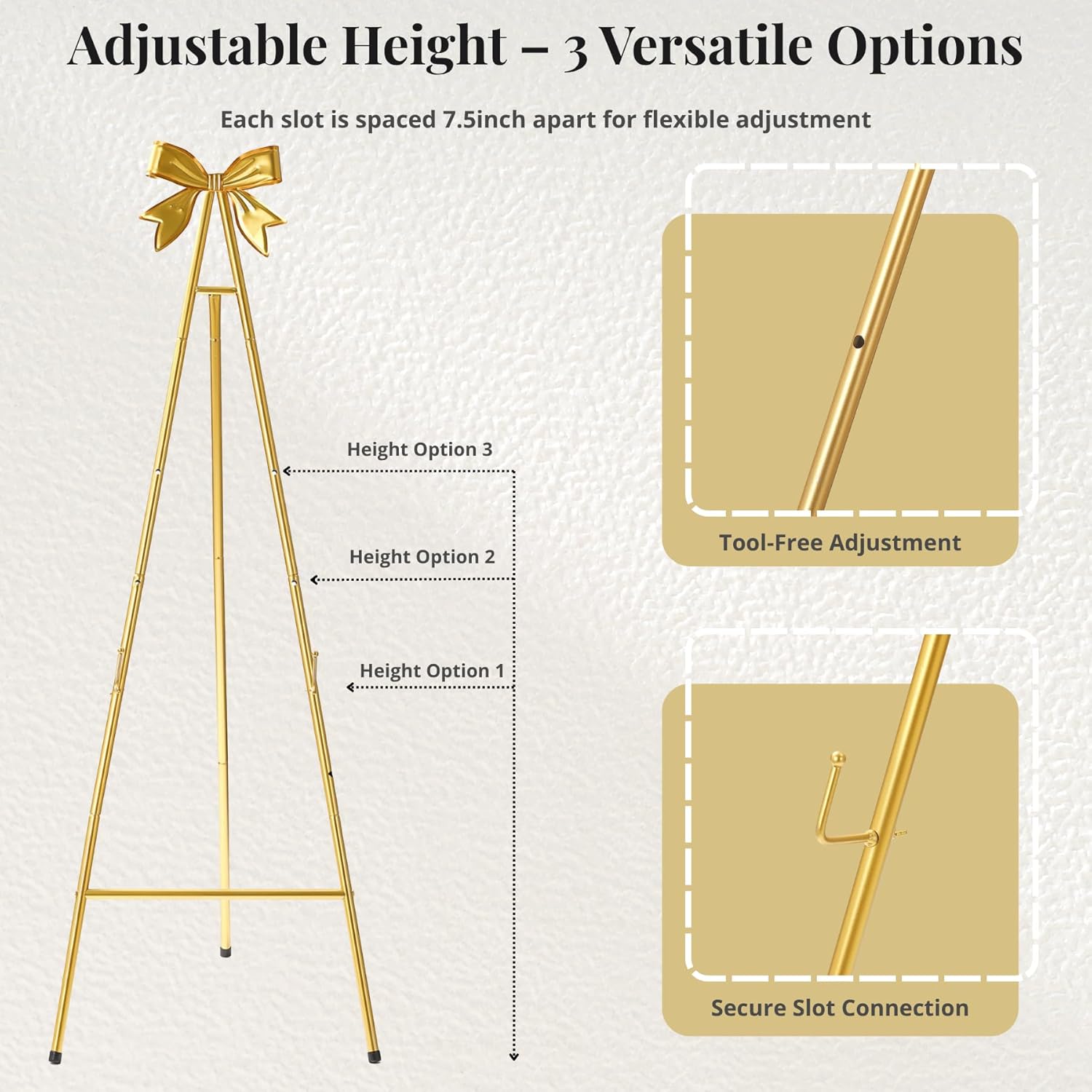 CaliDecor 58.5” H Gold Easel Stand for Sign, Large Adjustable Metal Display S…
