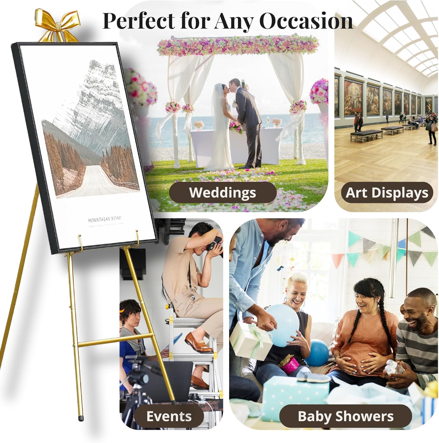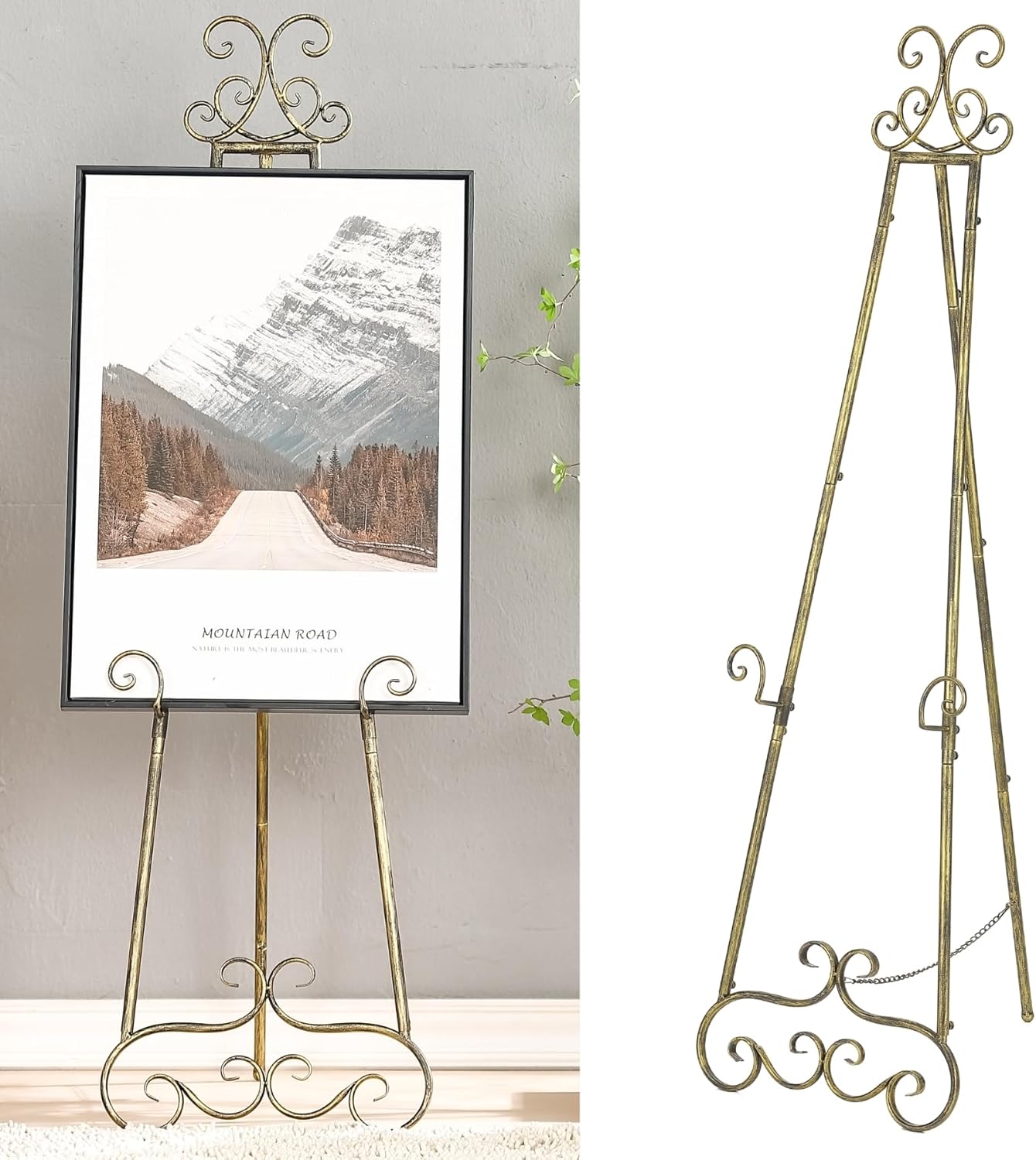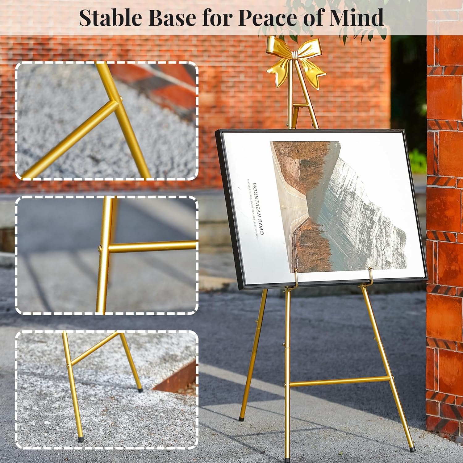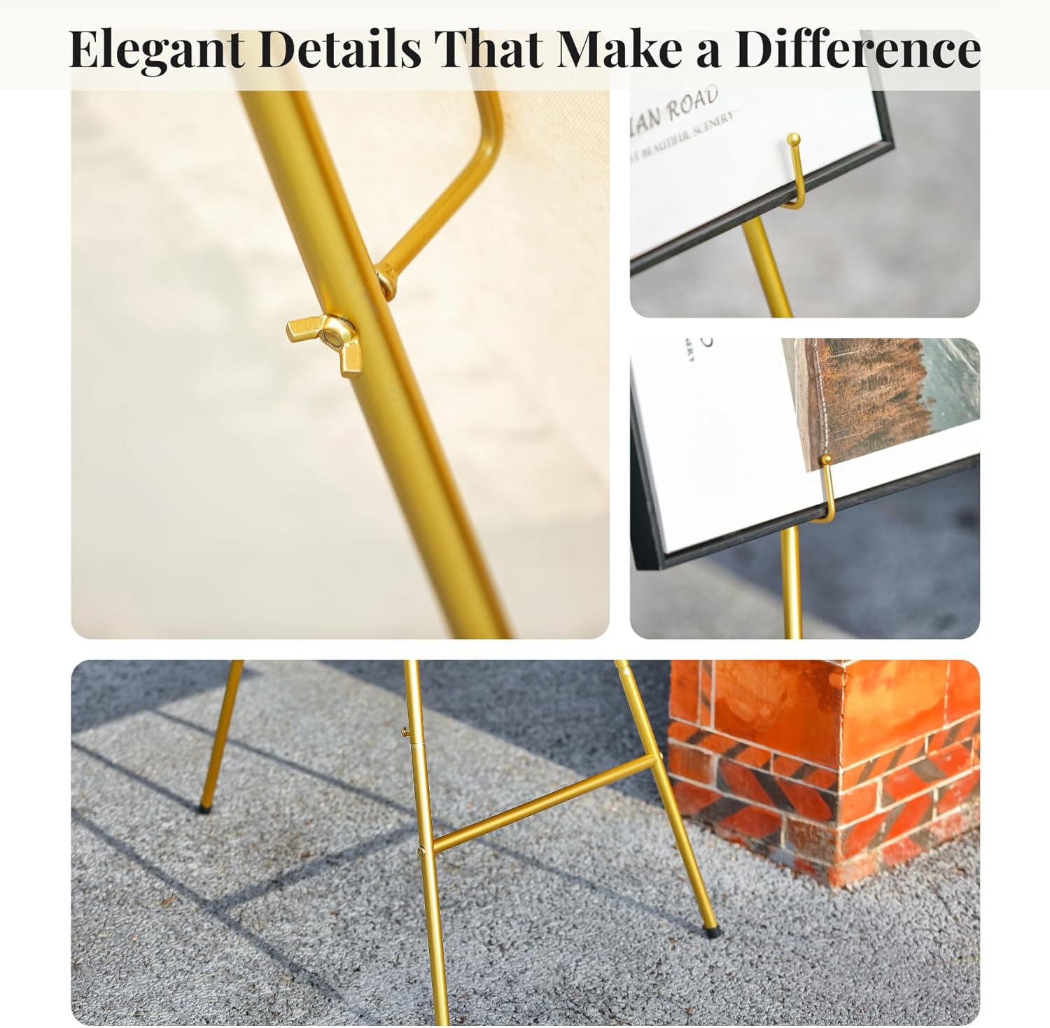 CaliDecor 57”H Metal Easel Stand for Sign Gold, Upgrade Large Free Standing A…
