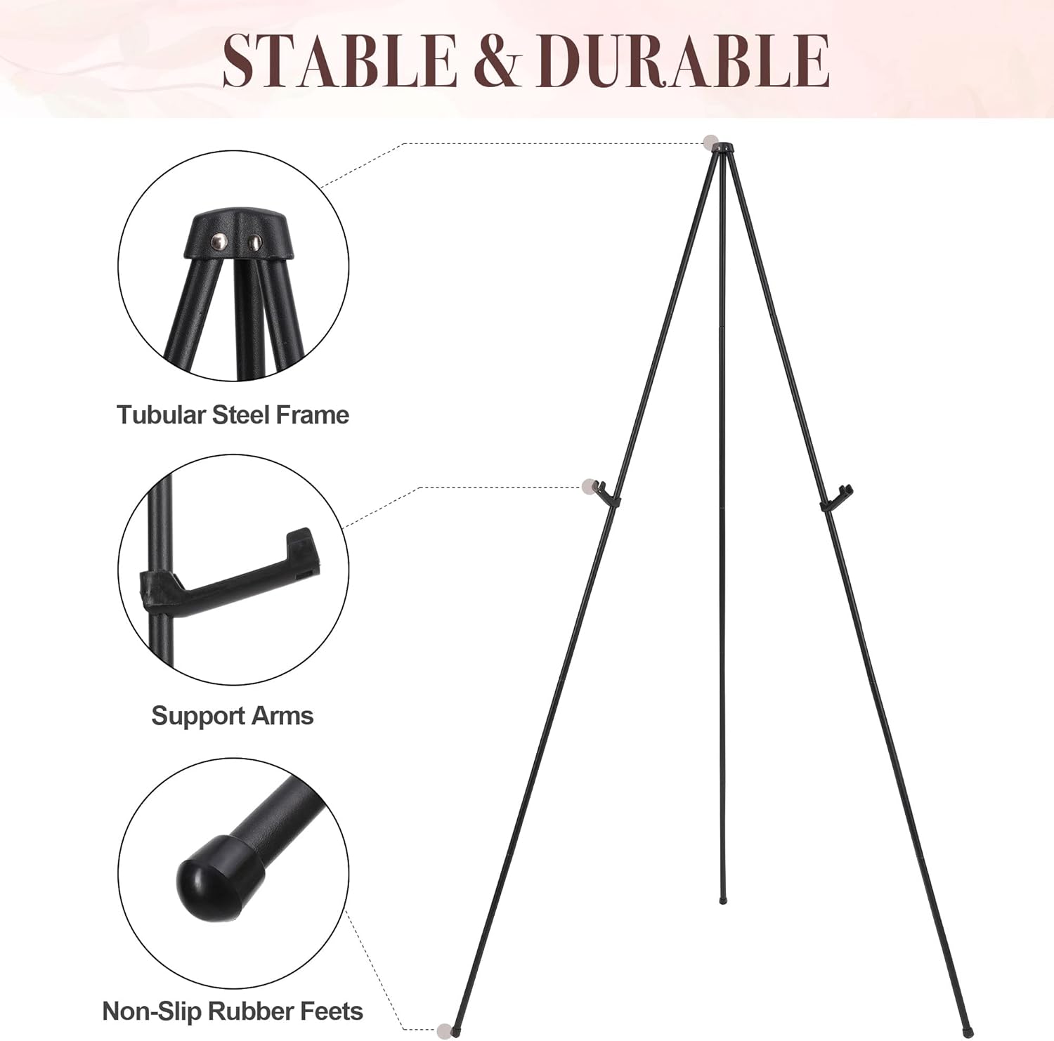 DDEAT Easel Stand for Wedding Sign & Poster 63” Easels for Display Portable Art Easel for Floor Adjustable Metal Easel Black