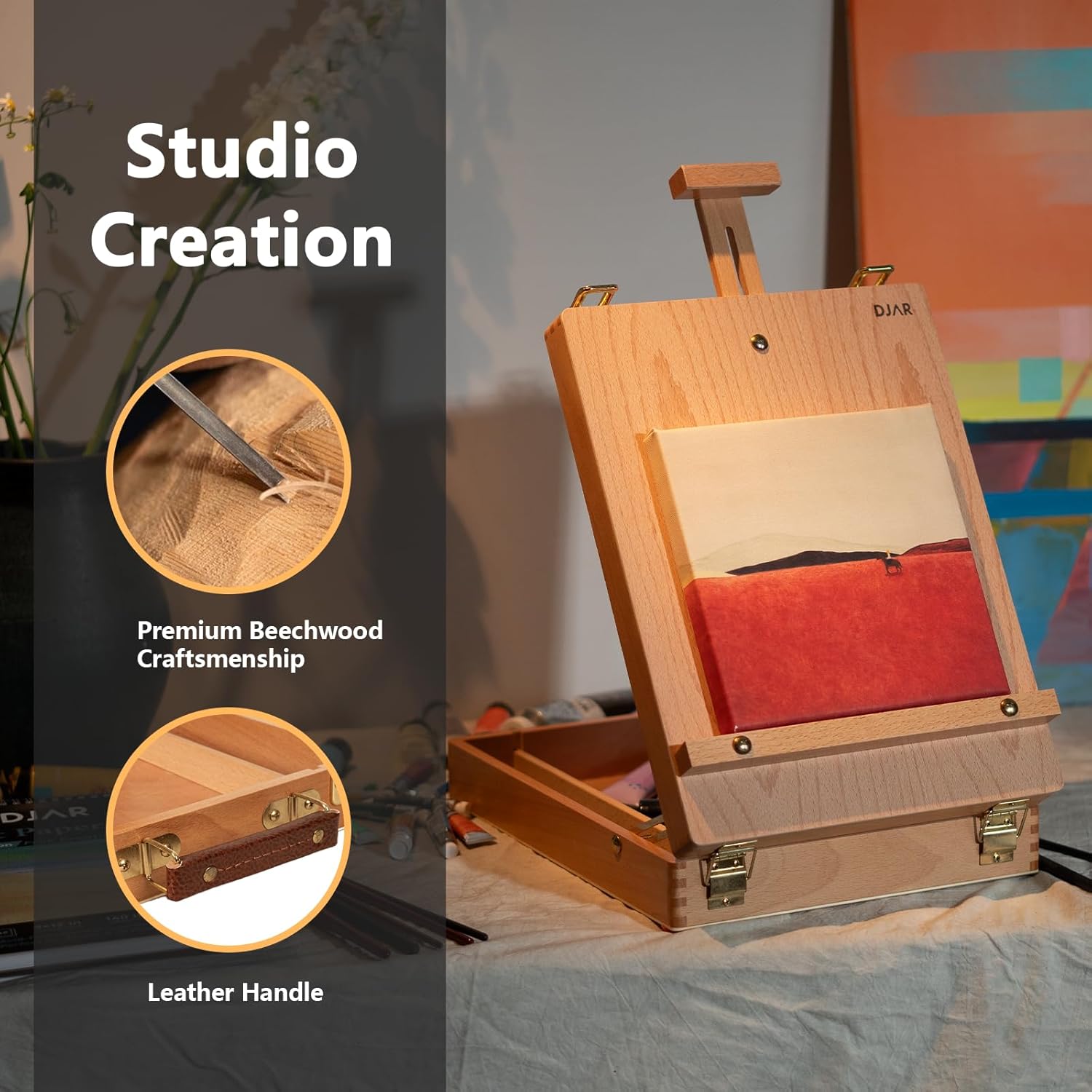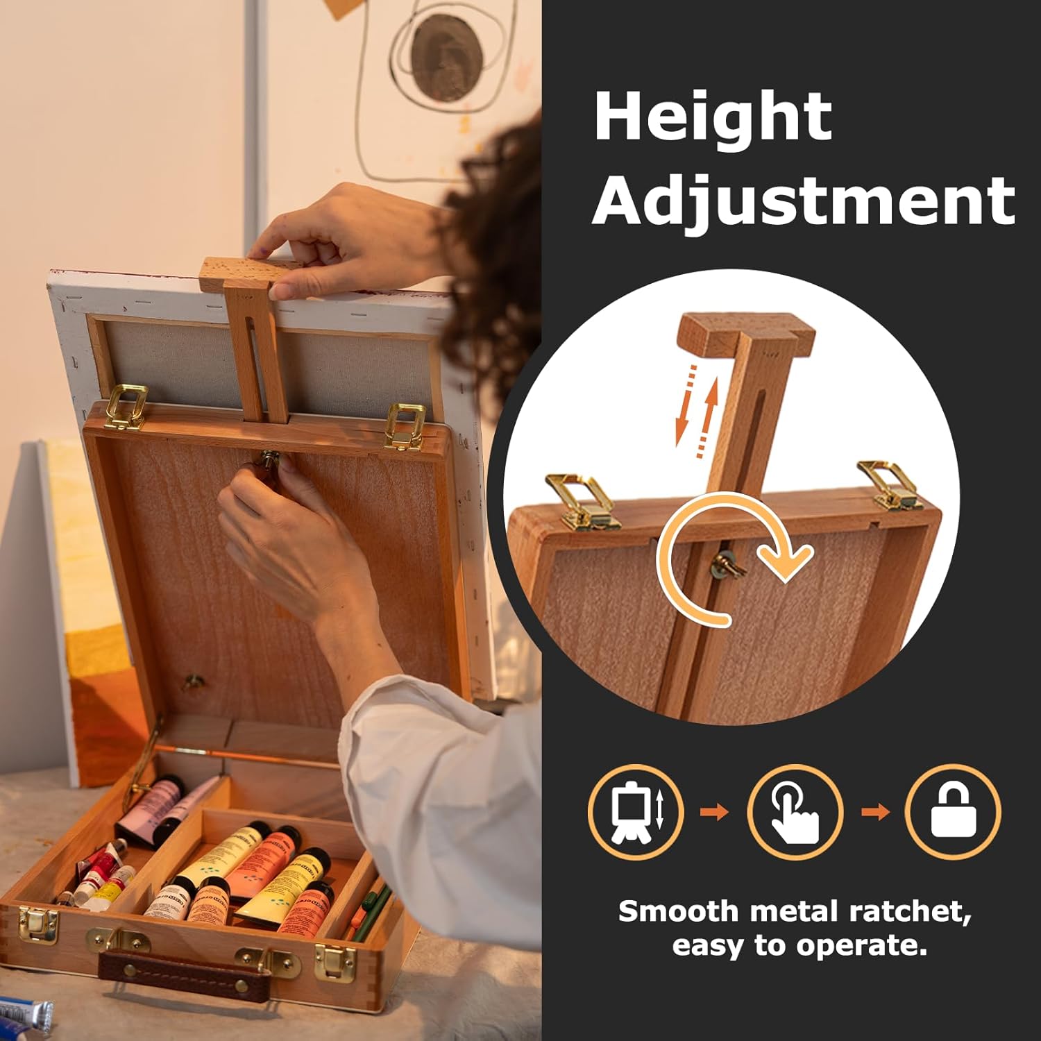 VISWIN Heavy-Duty Table Top Easel for Painting, Adjustable Beech Wood Tabletop Easel, Hold Canvas up to 23u201D, Portable Art Desktop Easel Stand for Adults, Artists, Beginners u2013 Natural