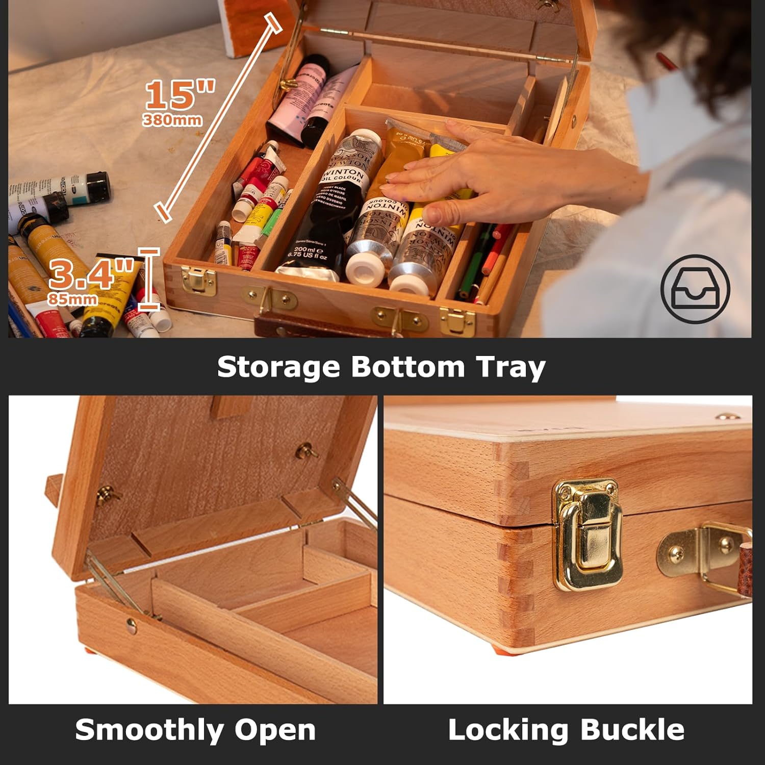 VISWIN 25″ H-Frame Tabletop Easel for Painting, Adjustable Beech Wood Table Top Easel, Portable Art Easel for Adults, Artists, Beginners, Holds Canvas up to 15″ u2013 Natural