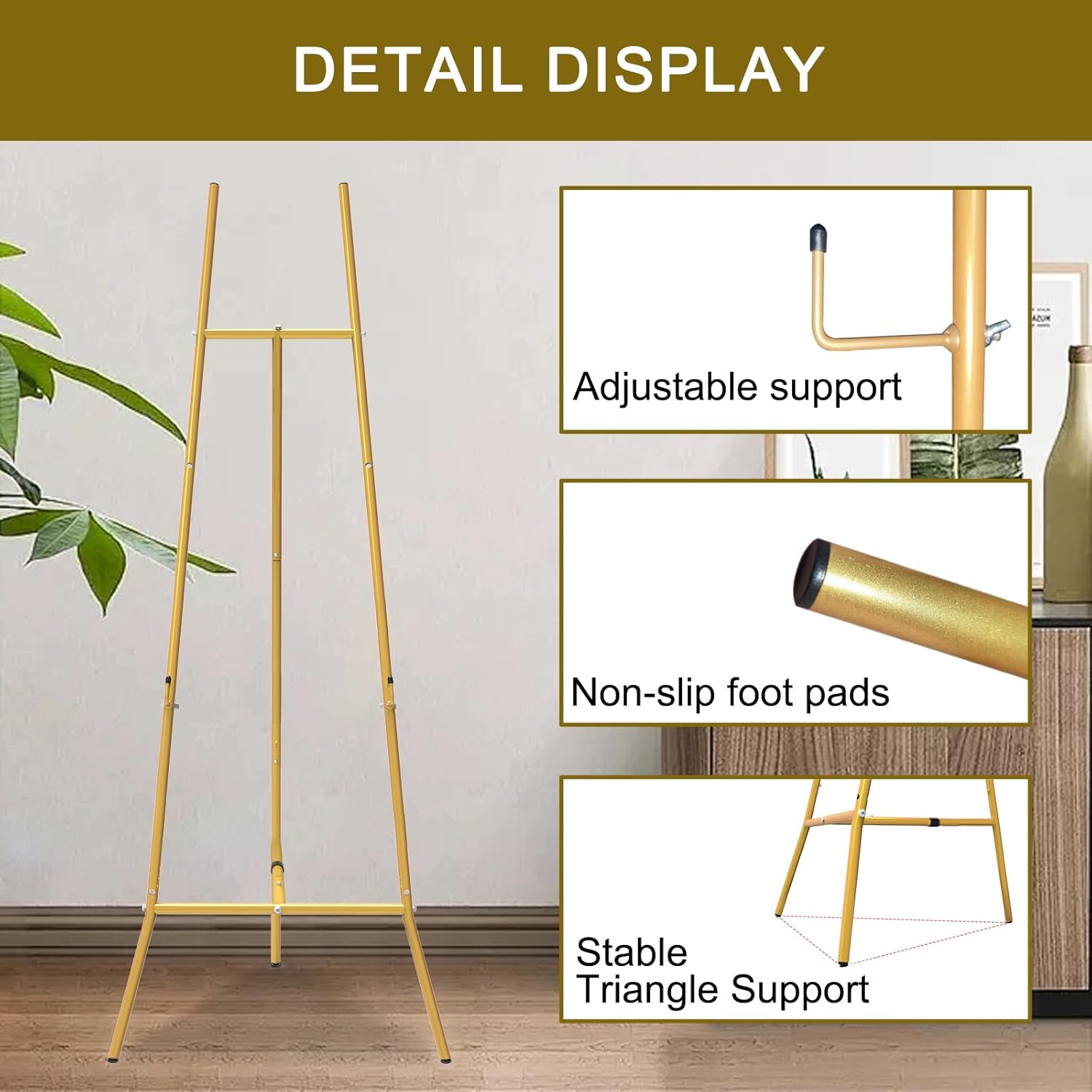 Gold Easel Stand for Sign – Heavy Duty Metal Freestanding Adjustable Display Stand (3-Tier), Large Professional Easel for Paintings, Artwork & Commercial Displays, Durable Exhibition Easel