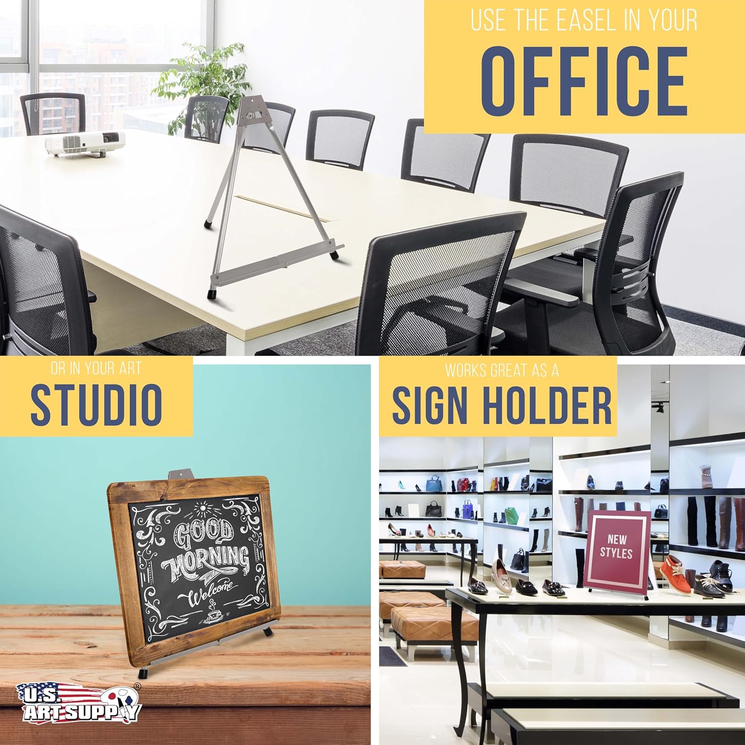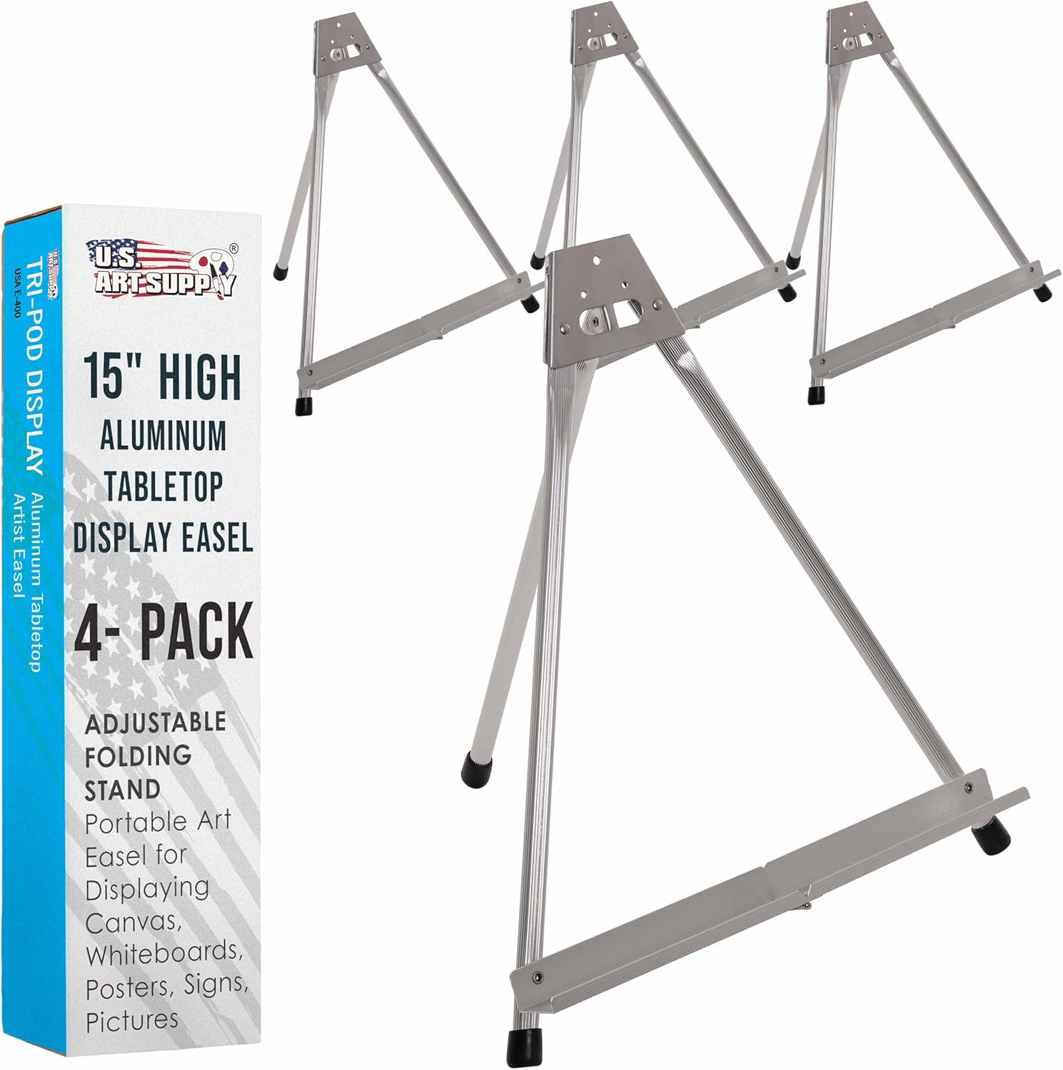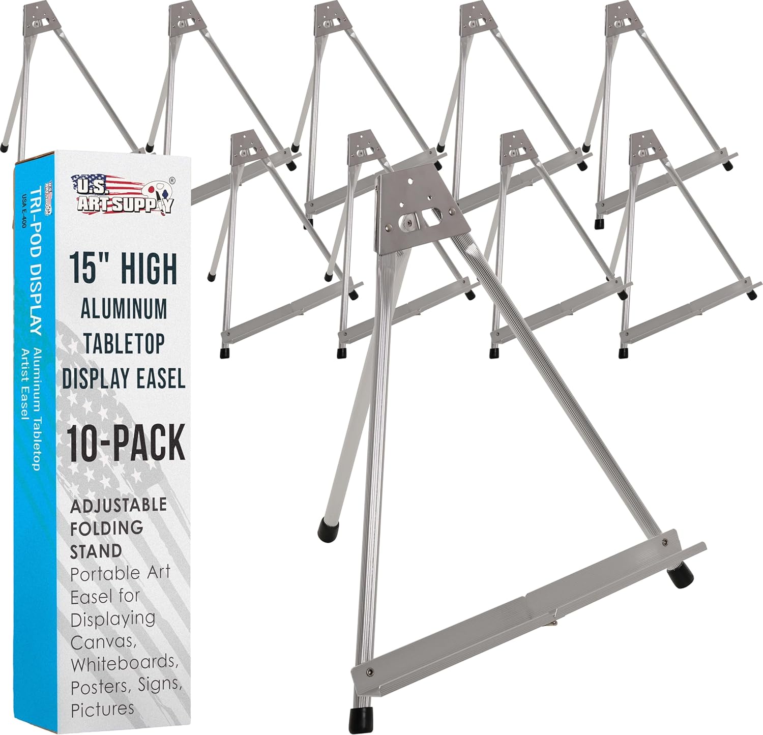 U.S. Art Supply 15″ High Aluminum Tabletop Display Easel for Painting, Adjustable Folding Stand – Portable Art Easel for Displaying Canvas, Whiteboards, Posters, Signs, Pictures, Paintings