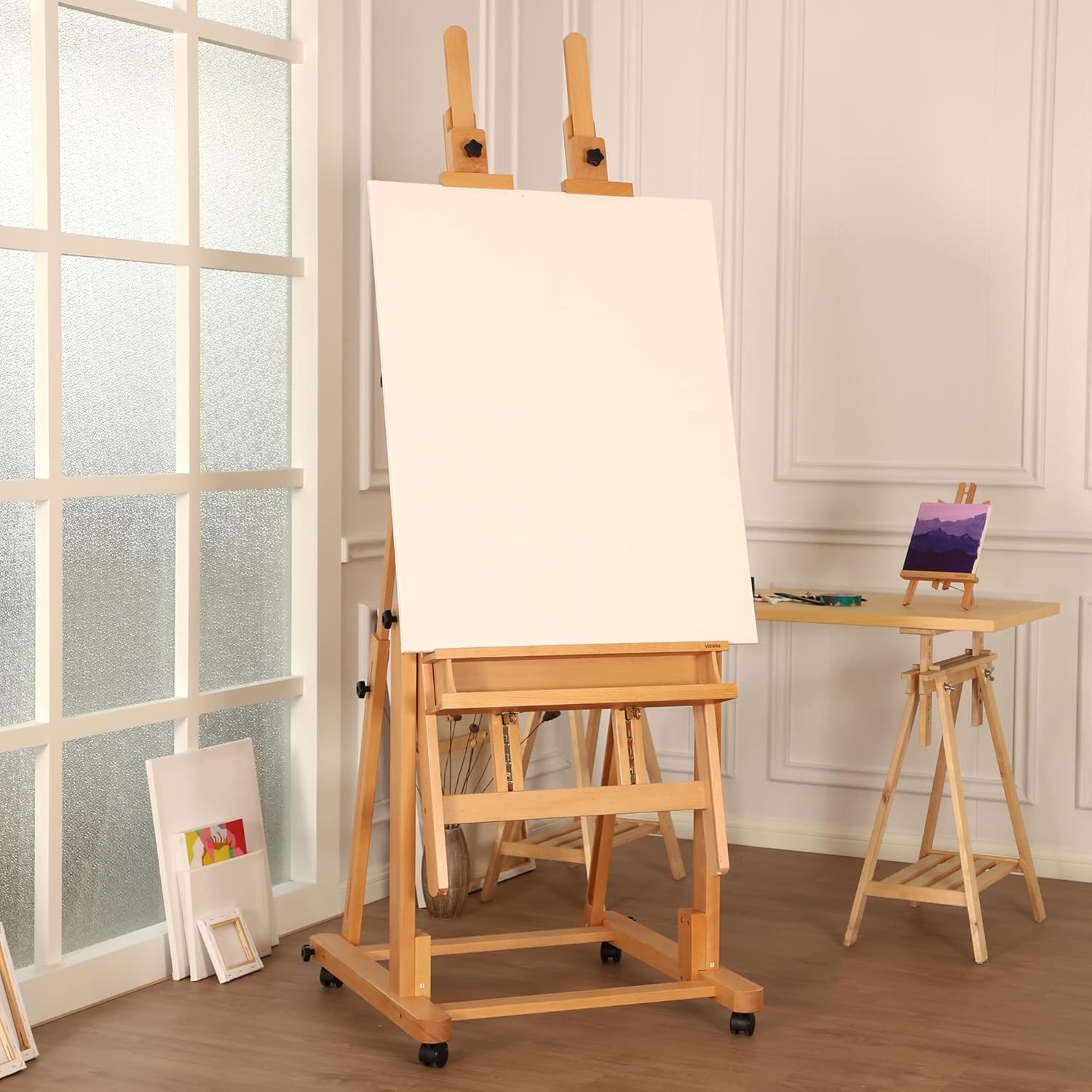 Be the first to review “VISWIN Double Mast Heavy-Duty H-Frame Easel, Hold Canvas up to 83″, Tilts Flat & Movable, Adjustable Beech Wood Large Easel Stand for Painting with Storage, Professional Art Easel for Adults, Artists”