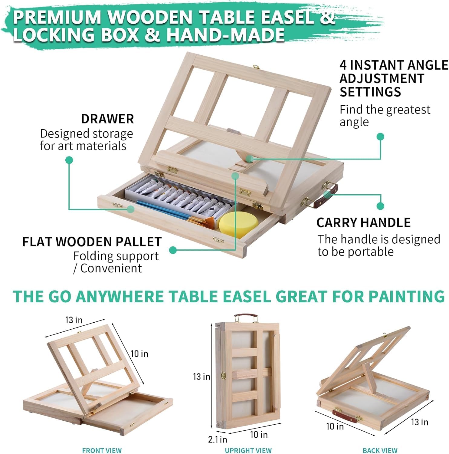 THE PORTABLE WOODEN TABLETOP EASEL, GREAT FOR ON-THE-GO ART-MAKING